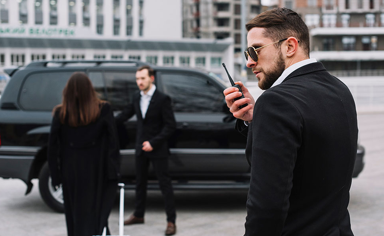 Security teams have a low profile presence, making sure that the client is not attracted to attention.
